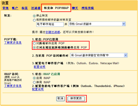 3、选择后,请点击“保存更改”。这样您就成功开启Gmail的POP服务了。