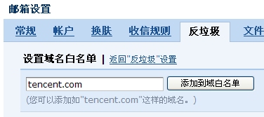 将一个域名添加到白名单后,该域名下各个邮箱发来的信件都将不受反垃圾规则的影响,保证您能收到同一个域名下各个邮箱发来的信件。