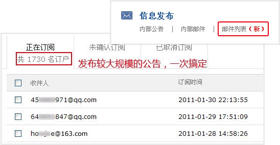 2011年3月16日:新增邮件列表功能