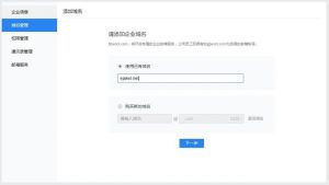 腾讯免费版企业邮箱申请填写域名界面,输入需要关联的域名点击“下一步”之后如下图所示: