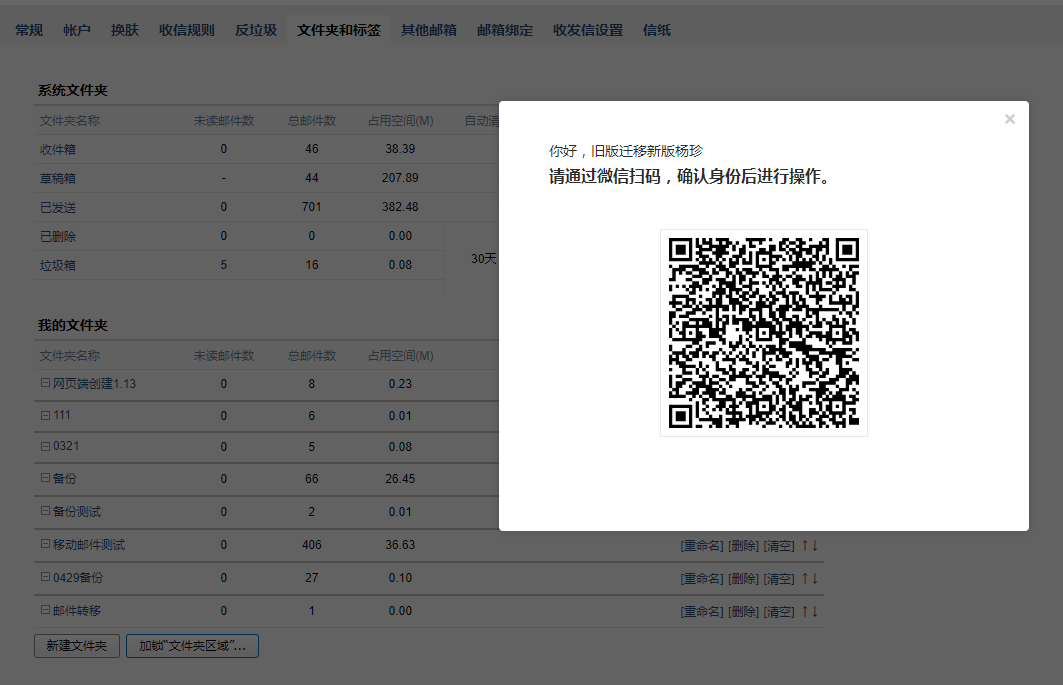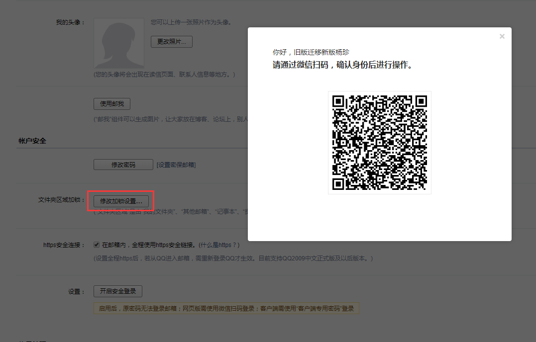 已绑定微信成员邮箱,可扫码验确认身份后设置我的文件夹/其他邮箱/记事本/日历密码;