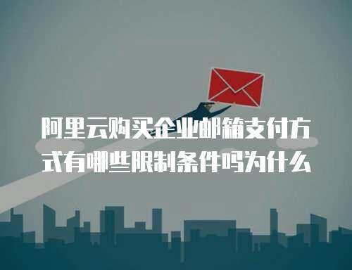随着互联网技术的发展,电子邮件已经成为企业之间沟通的重要工具之一。为了提高邮件的安全性和可靠性,许多企业开始选择购买企业邮箱。阿里云作为一家知名的云计算服务提供商,其企业邮箱产品备受关注。那么,阿里云购买企业邮箱时有哪些支付方式限制条件呢?本文将为大家详细介绍。支付方式限制条件阿里云企业邮箱提供多种支付方式供用户选择,包括支付宝、微信支付、网银支付等。然而,由于一些限制条件的存在,用户在选择支付方