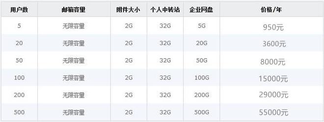 更详细腾讯企业邮箱价格表:https://www.exmailpro.com/prices.html