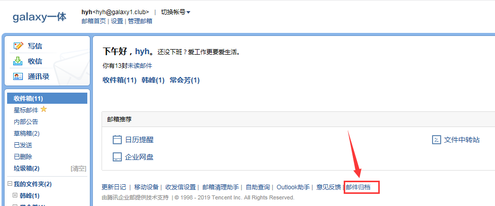 开启邮件归档功能