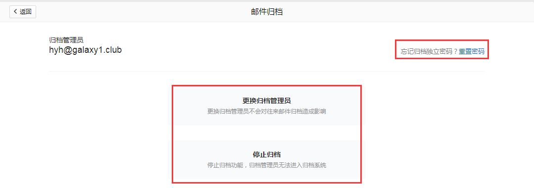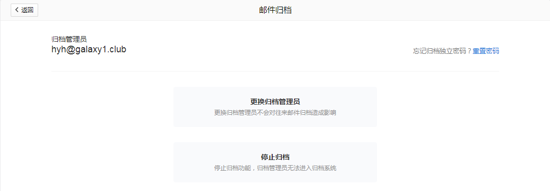 邮件归档系统需单独设立归档管理员(更换归档管理员对归档记录无影响),并使用独立密码管理。