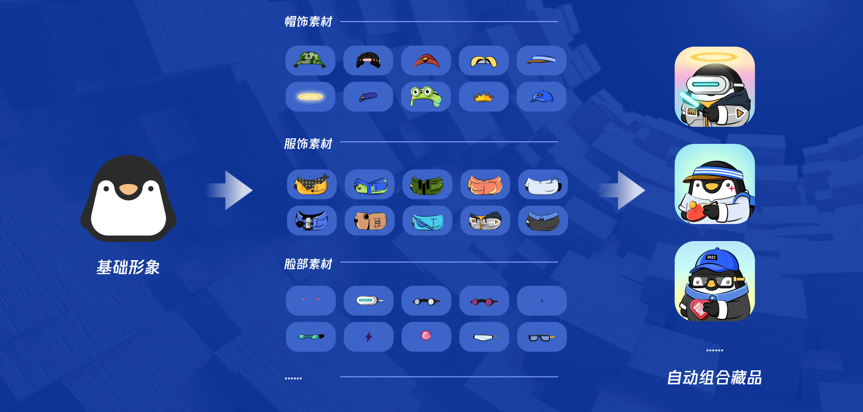 基于多图层的不同素材,可自动组合生成完全不同的2D藏品或3D数字藏品。