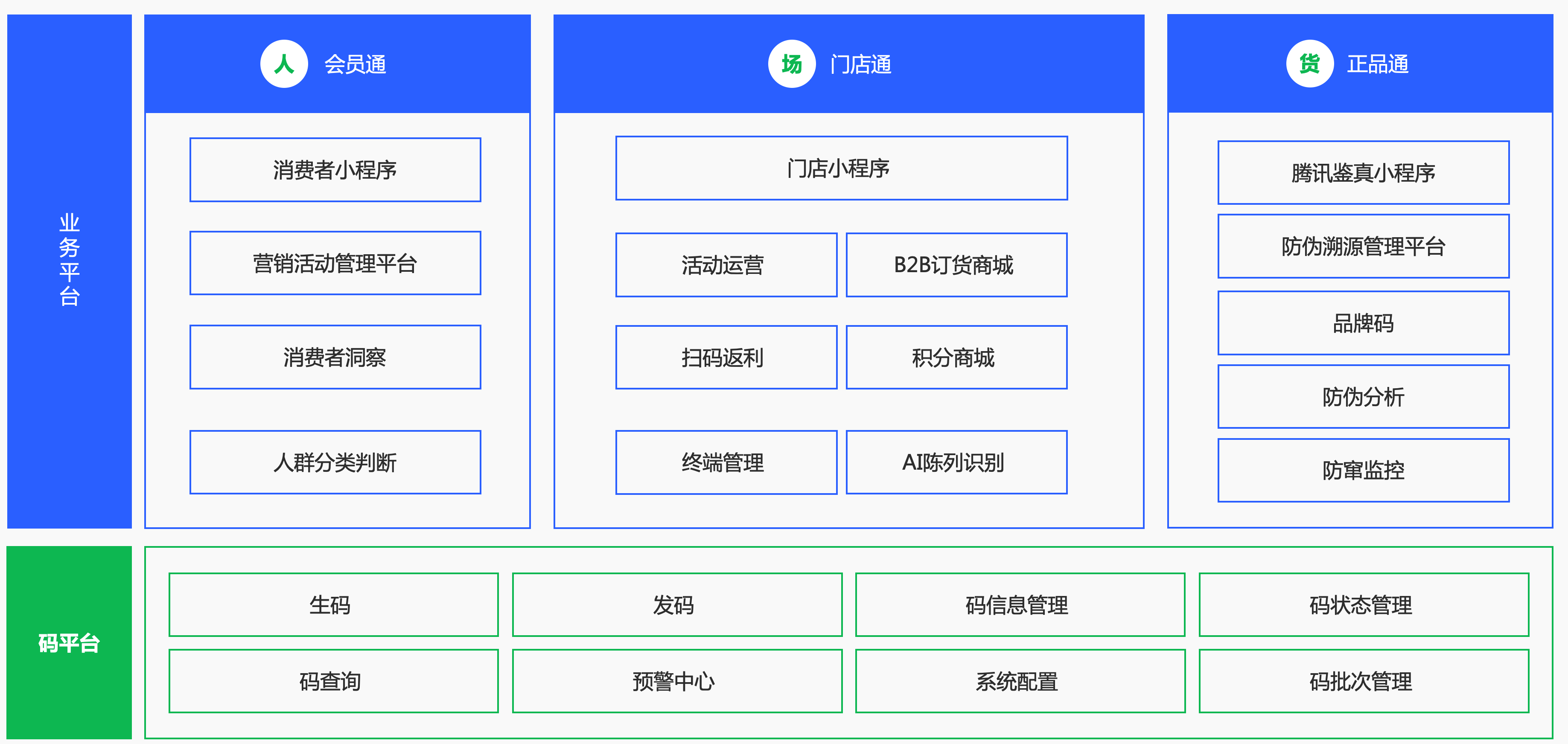 门店通 | 以商品二维码为撬点,通过门店业务场景数字化、加强门店与消费者的互动(BC 联动),打通门店与渠道各环节的业务流程,帮助品牌商最终实现促进终端销售,提升终端运营效率,优化渠道资源配置效率的目的。 |