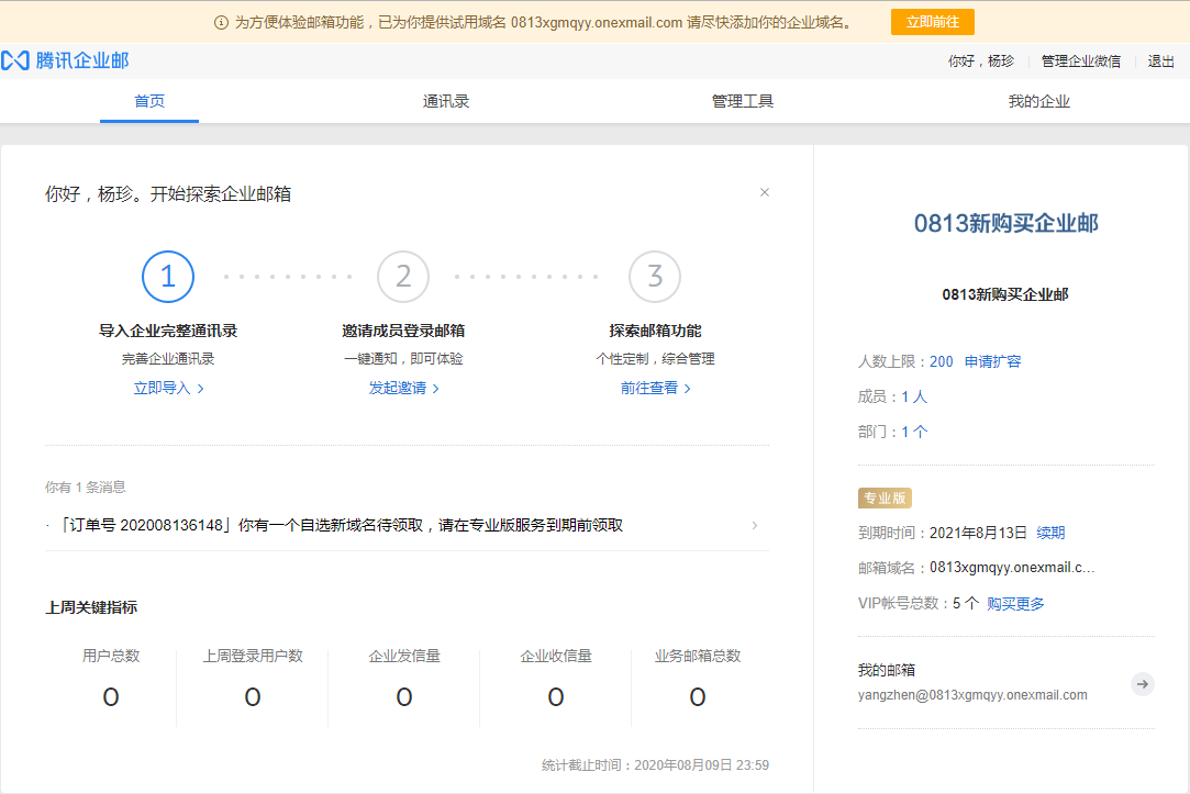 全新购买专业版或开通基础版腾讯企业邮箱流程如下: