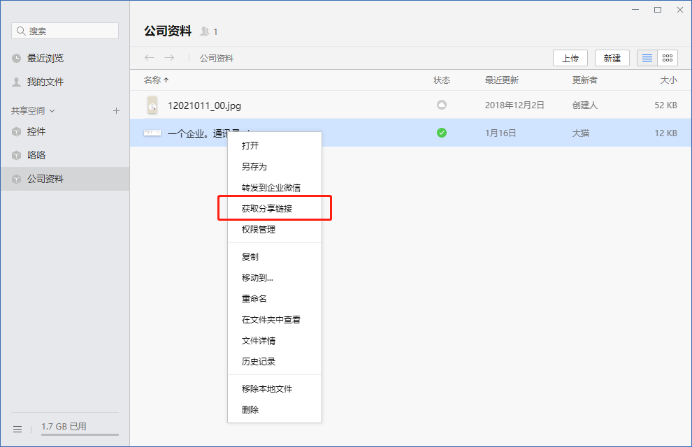 可以在电脑端打开微盘—找到需要分享的文件—右键文件—获取分享链接。