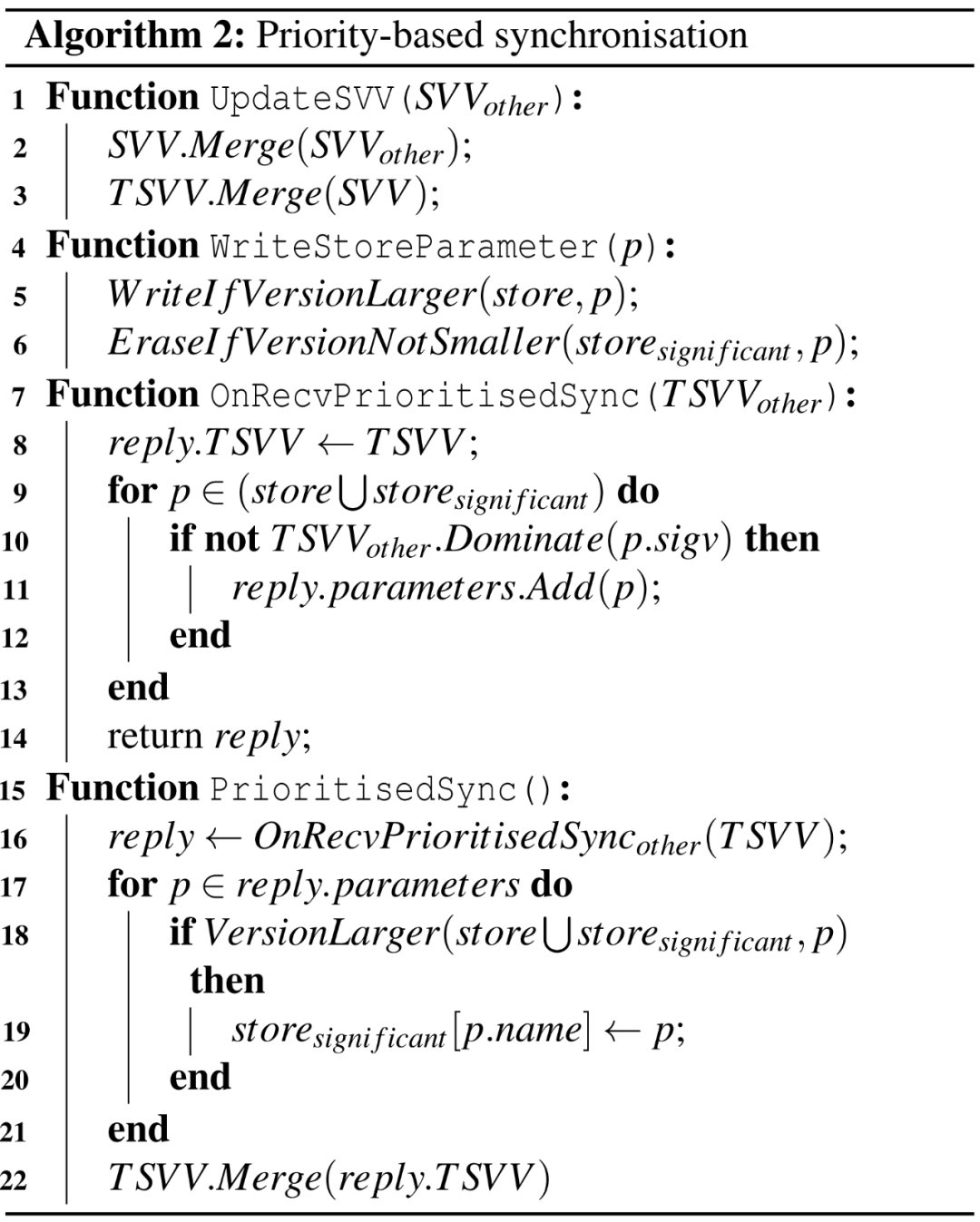 如下算法 2 描述了使用优先级调度器增强的 log-less P2P 同步:
