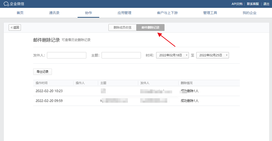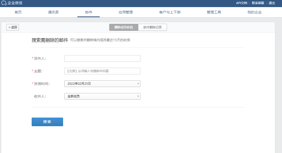 删除成员收信属于专业版特享功能,支持管理员搜索并删除域内邮件。