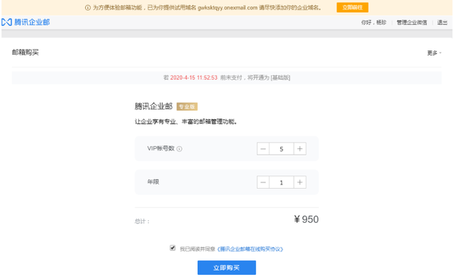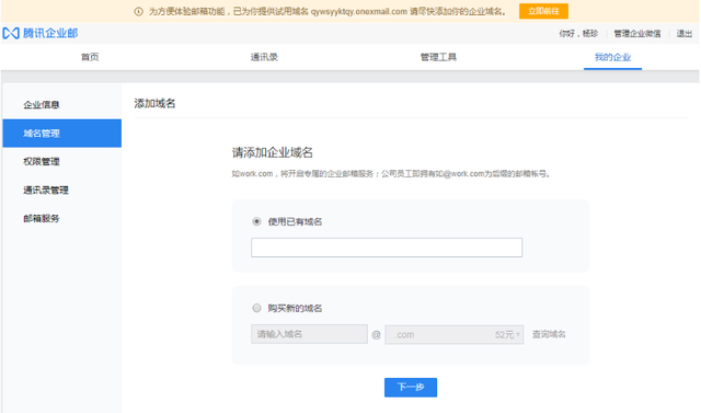 第二步:开通腾讯企业邮。