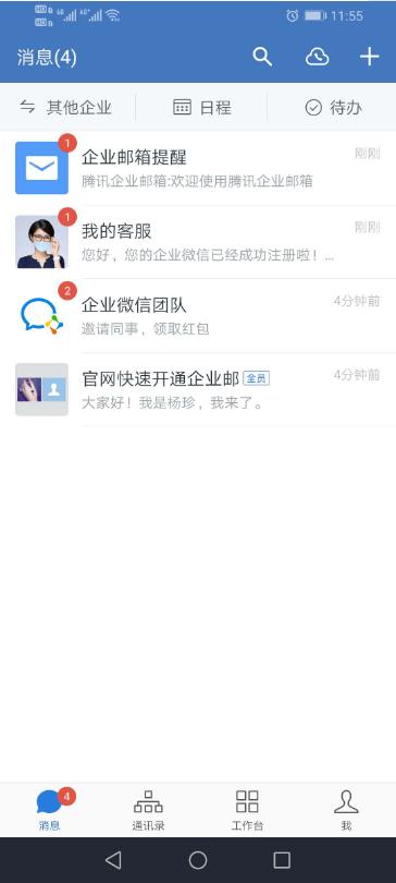登录企业邮管理后台并了解功能特性,同时企业微信或者服务号下发注册成功通知。