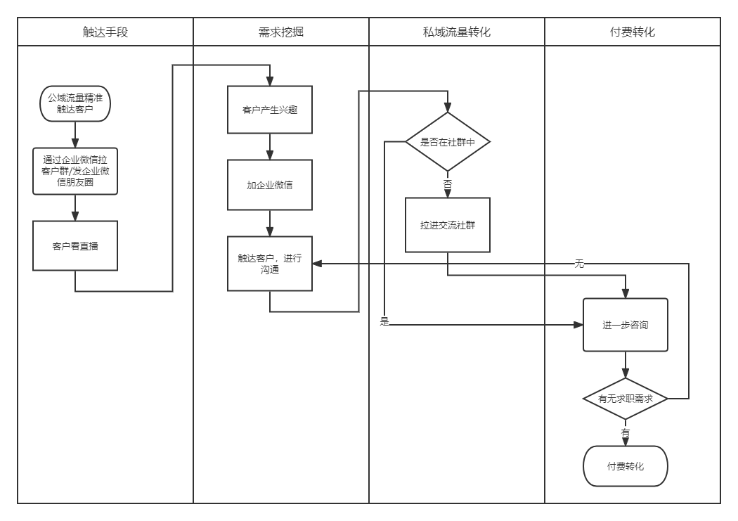 这个时候如果拉一个混合群(工作人员用企业微信,客户用个人微信)让后端的产品经理直接接触客户的需求,从而改进产品这样就会把沟通和生产的效率提高好几倍。