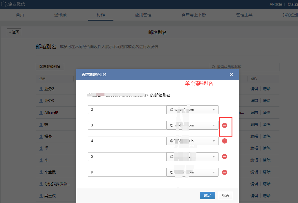 若需清除别名账号,支持单个清除或者是一次性全部清除。