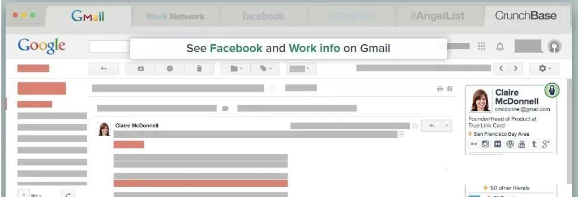Discoverly是一款非常好用的潜在客户信息挖掘工具,它可不是简单的查找一下潜在客户邮箱地址这么简单的一个功能。该工具可汇总Gmail,Facebook,Twitter和LinkedIn上的某一潜在客户的所有社交信息,并且它还可以在你的电子邮箱中出现一个小侧边栏。上面显示潜在客户的一些重要相关信息,如上图右边所示。