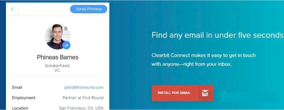 Clearbit Connect是一款付费的外贸客户邮箱地址查找工具,但是每个月会给用户提供40个免费使用的信用积分。