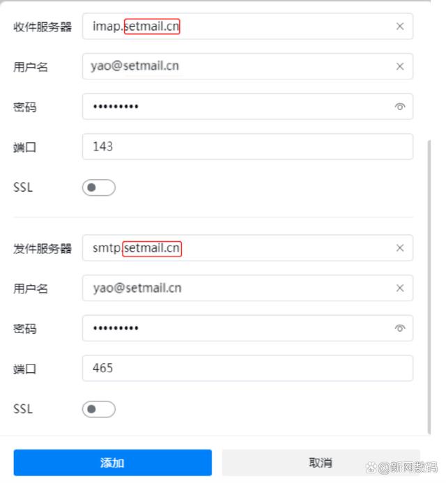三、配置信息填写后,请确认密码无误后,点击添加,进入邮箱页面。