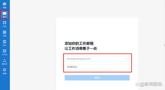 一、打开电脑端企业微信->邮件,输入邮箱账号密码;