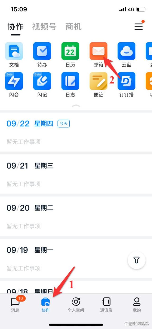 一、登录手机端钉钉->协作->邮箱,进入登录邮箱界面;