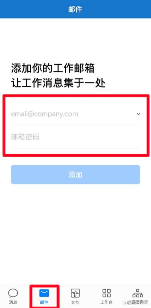 一、打开手机端企业微信->邮件,输入邮箱账号密码;