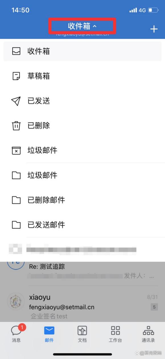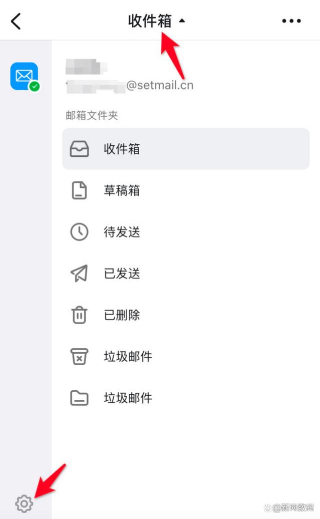 三、点击收件箱可以查看更多邮箱文件夹,点击齿轮图标可进入设置页面