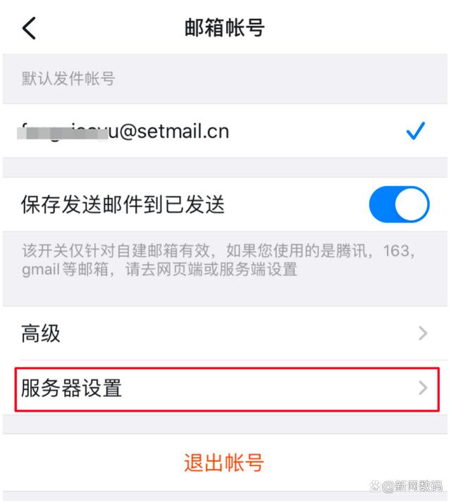 四、如需修改账号服务器,在设置页面选择要修改的邮箱账号->服务器设置,进入服务器设置页面;