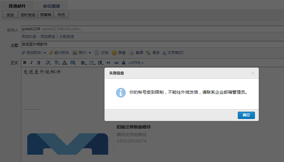 被禁止外发的成员账号不可往域外发信,只允许跟公司内部成员通信。
