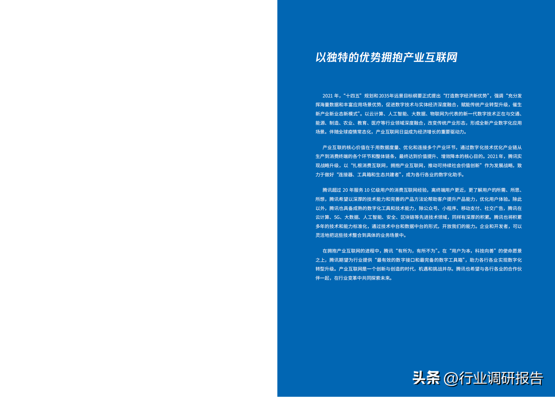 2021年,“十四五”规划和2035年远景目标纲要正式提出“打造数字经济新优势”,强调“充分发挥海量数据和丰富应用场景优势,促进数字技术与实体经济深度融合,赋能传统产业转型升级,催生新产业新业态新模式”。以云计算、人工智能、大数据、物联网为代表的新一代数字技术正在与交通、能源、制造、农业、教育、医疗等行业领域深度融合,改变传统产业形态,形成全新产业数字化应用场景。伴随全球疫情常态化,产业互联网日益成为经济增长的重要驱动力。