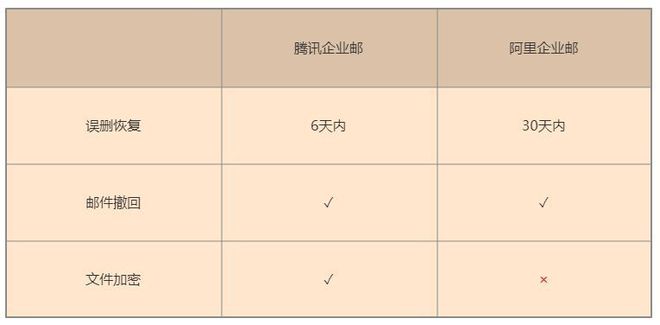 在这三项功能中,值得特殊说明的就是邮件撤回这个功能:虽然腾讯、阿里邮箱都支持邮件撤回功能,但限制各有不同 —— 阿里邮箱支持撤回发送到公司外部的邮件,只要对方使用的也是阿里邮箱;腾讯邮箱可以撤回发送给腾讯邮箱、QQ邮箱的邮件。