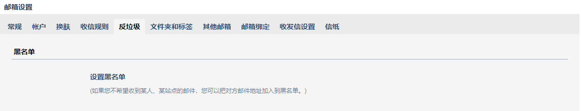 1,在“邮箱设置”->“反垃圾”->“黑名单”栏目中,点击“设置黑名单”。