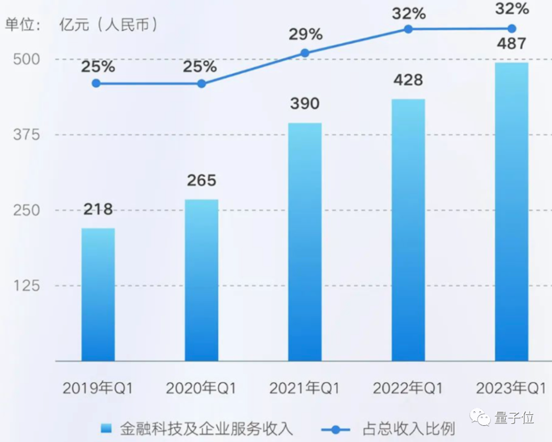 其中,包含腾讯云的金融科技及企业服务板块,一季度营业收入达到487亿元,连续8个季度收入占比超过30%,是(除了其他收入外)目前最大的收入来源之一。