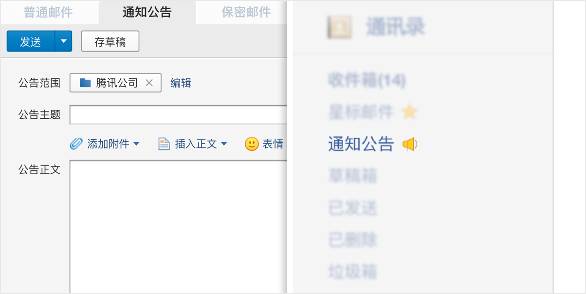 · 支持在邮箱内发布公告,支持更多格式,使用更方便。