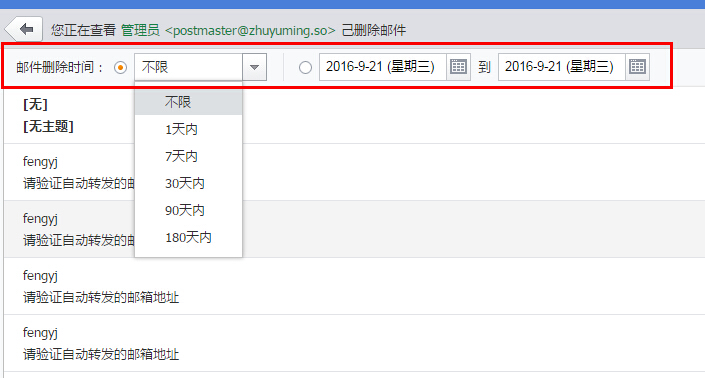 3.选择邮件删除时间范围进行搜索。