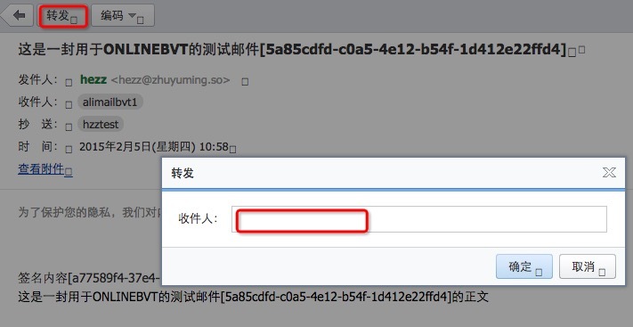 4.找到误删除的邮件,单击转发,输入需接收此邮件地址,发送成功后请收件人核实。