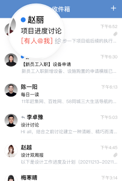 提供了更正式、更安全的工作邮件地址,可以方便地收发同事邮件;还支持对收发件人快捷发起群聊,智能分类邮件