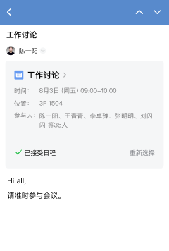 从邮件中发起的日程邀约,还可在日程应用中统一管理,工作安排不遗漏