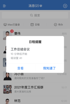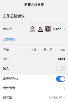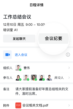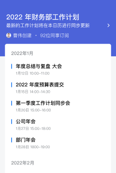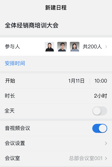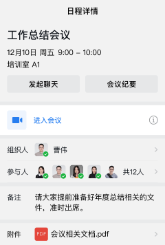 提供了高效组织会议和管理公共日历的能力,还可以邀请同事、微信客户、上下游一起参与日程