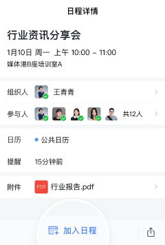 收到日程分享后,用户可以主动加入日程,关注后续日程安排