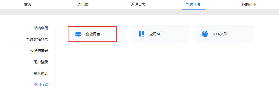 登录到管理端-管理工具-应用互联-企业网盘