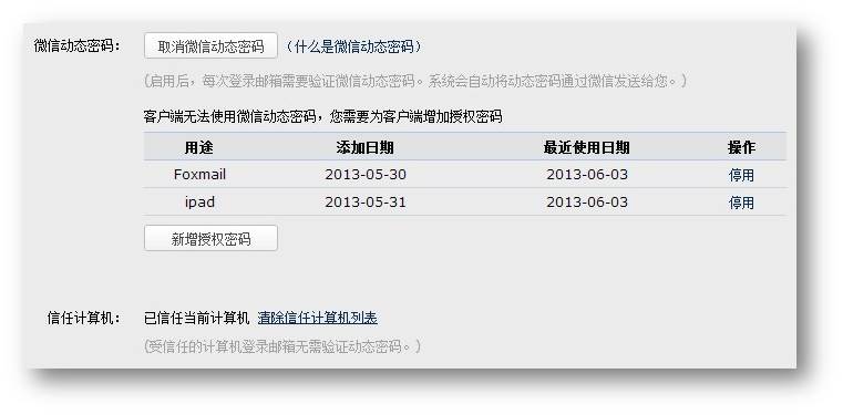 您还可以停用“授权密码”管理对应的客户端;“信任计算机”不再要求验证动态密码。