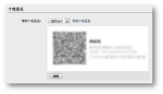 您可以选择可以编辑二维码名片显示内容项,将二维码名片作为默认发信签名档。