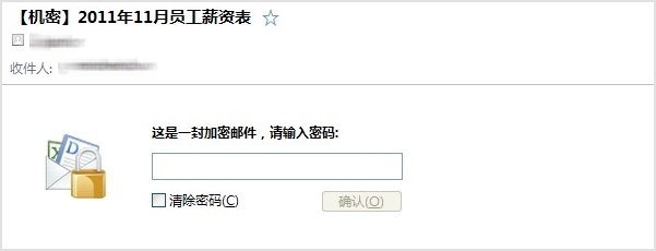 对于企业邮箱,或QQ邮箱的用户,点击邮件时会进入一个解密页面,输入邮件密码后即可查看邮件内容。解密后若有退出邮箱、清除浏览器cookie等操作,再次阅读邮件时需要重新输入密码。