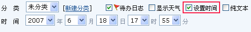 当您需要修改日志的创建时间时,请进入该日志的编辑状态,并勾选“修改时间”就可以建立新的创建时间。您可以设置当前时间以前,也可以是以后。