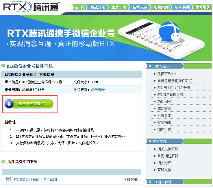 2、 RTX与微信企业号实现消息互通,在微信企业号可轻松实时收发RTX消息。