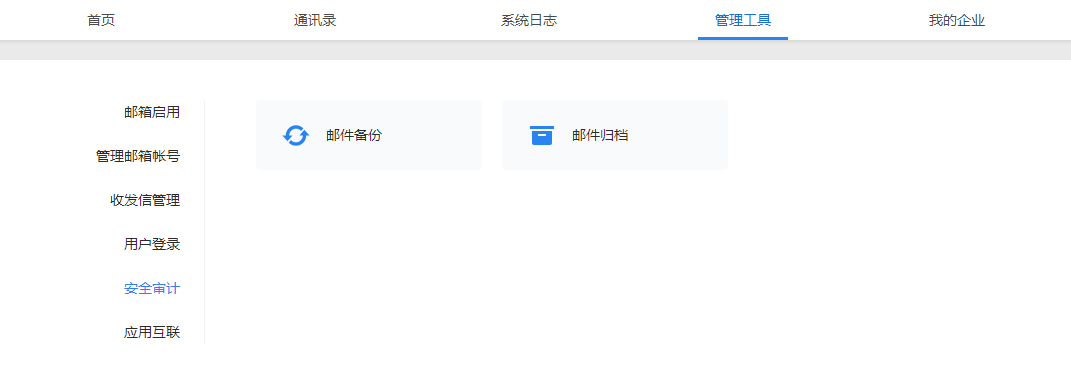 登陆管理端,选择“管理工具”-“安全审计”“邮件备份”,添加备份规则。