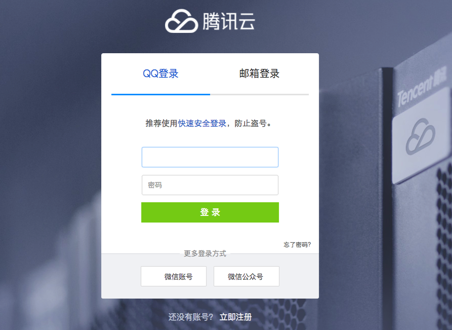 2.点击“前往腾讯云”,弹出腾讯云账号登录认证窗口,如下图: