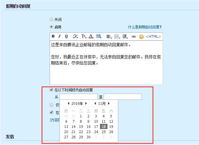 成员休假期间,可对自动回复的时间段进行设置: