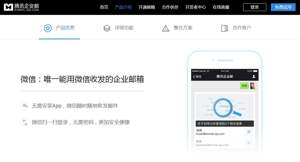 微信:唯一能用微信收发的企业邮箱;