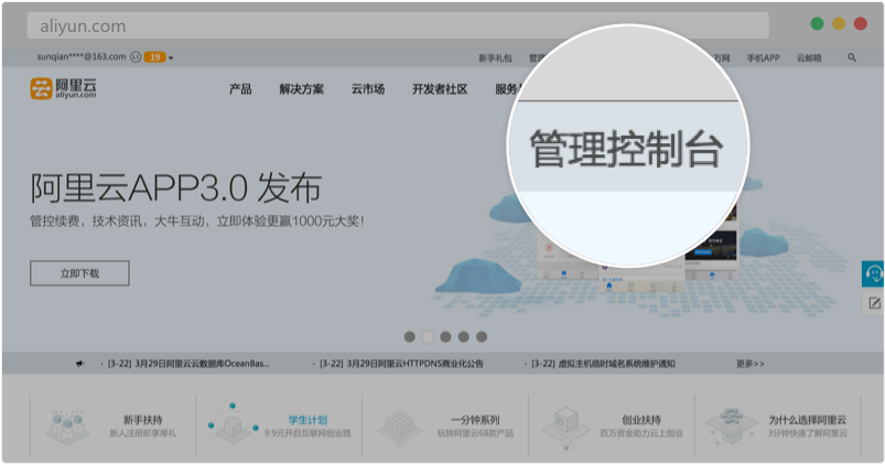 第一步:登录阿里云/万网,点击进入【控制台】